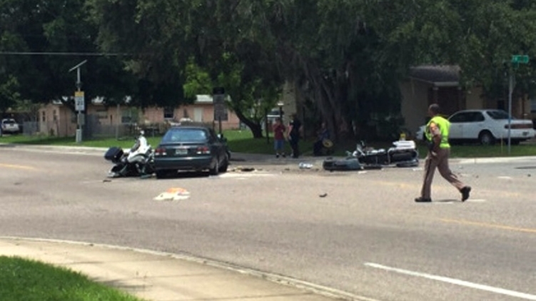 Машина въехала в сопровождающих похороны полицейских на мотоциклах, Фото: Twitter/@FSuttonWFTV