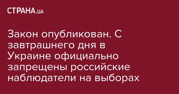 В газете Верховной Рады "Голос Украины" 27 февраля опубликовали закон "О внесении изменений в некоторые законы Украины относительно наблюдения за избирательным процессом в Украине", подписанный вчера президентом Порошенко и запрещающий гражданам РФ быть наблюдателями на украинских выборах даже в составе международных миссий.