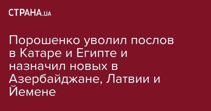 Порошенко уволил послов в Катаре и Египте и назначил новых в Азербайджане, Латвии и Йемене
