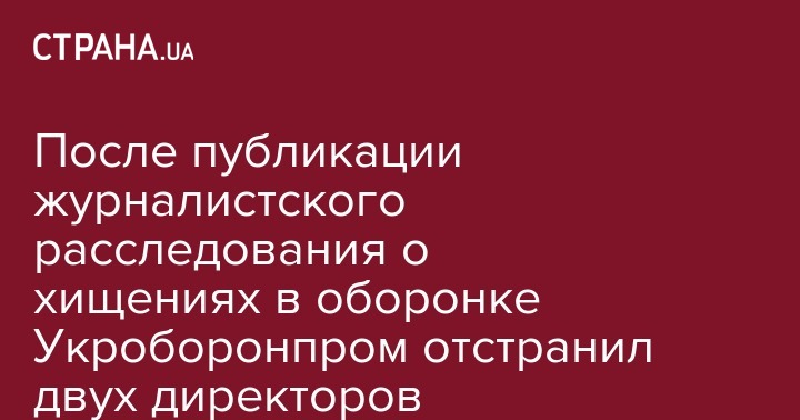 После публикации журналистского расследования о хищениях в оборонке Укроборонпром отстранил двух директоров