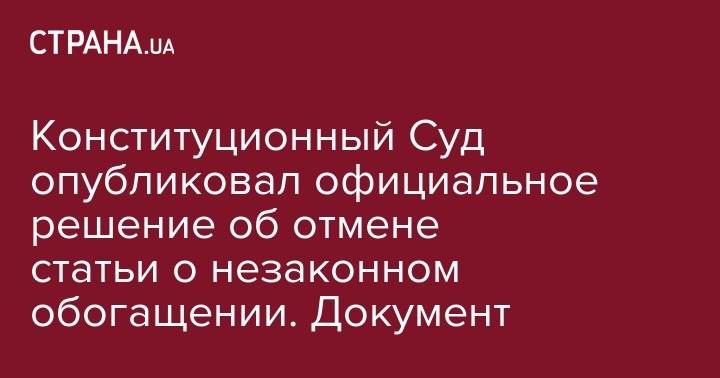 Конституционный суд Украины опубликовал свое официальное решение от 26 февраля, в котором статья УК о незаконном обогащении признается неконституционной. Об этом сообщает пресс-служба КСУ.
