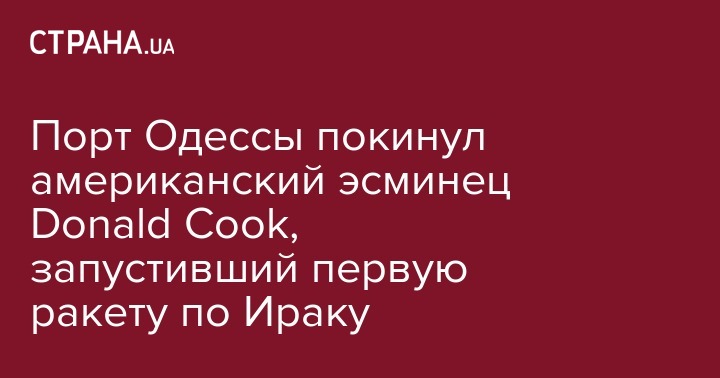 "Ракетный эсминец ВМС США Donald Cook (DDG-75) покинул Одессу 27 февраля после завершения запланированного визита в порт в рамках нашего постоянного присутствия в Черном море и поддержки наших союзников НАТО и региональных партнеров", - сказано в сообщении.