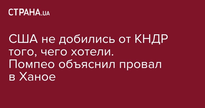 Помпео также отметил, что лидер КНДР Ким Чен Ын был не готов выполнить требования США. Комментируя позицию Пхеньяна по отмене всех санкций в отмен на ликвидацию ядерного объекта в Йонбене, дипломат подчеркнул, что "этого было бы недостаточно для ликвидации ракетно-ядерной программы" КНДР, поэтому американская сторона не пошла на эту сделку.