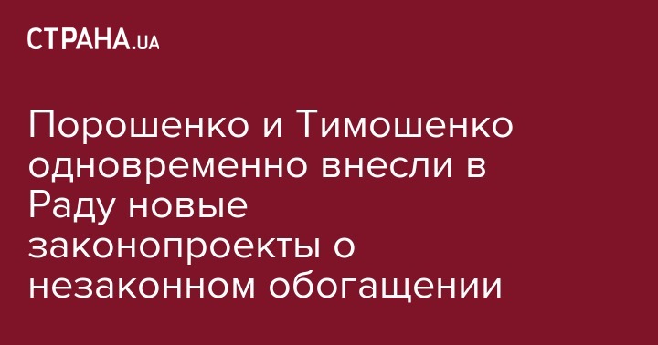 В свою очередь лидер Всеукраинского объединения "Батькивщина" Юлия Тимошенко зарегистрировала аналогичный законопроект, который должен внести изменения в УК, чтобы вернуть ответственность за незаконное обогащение чиновников, передает "Интерфакс-Украина".
