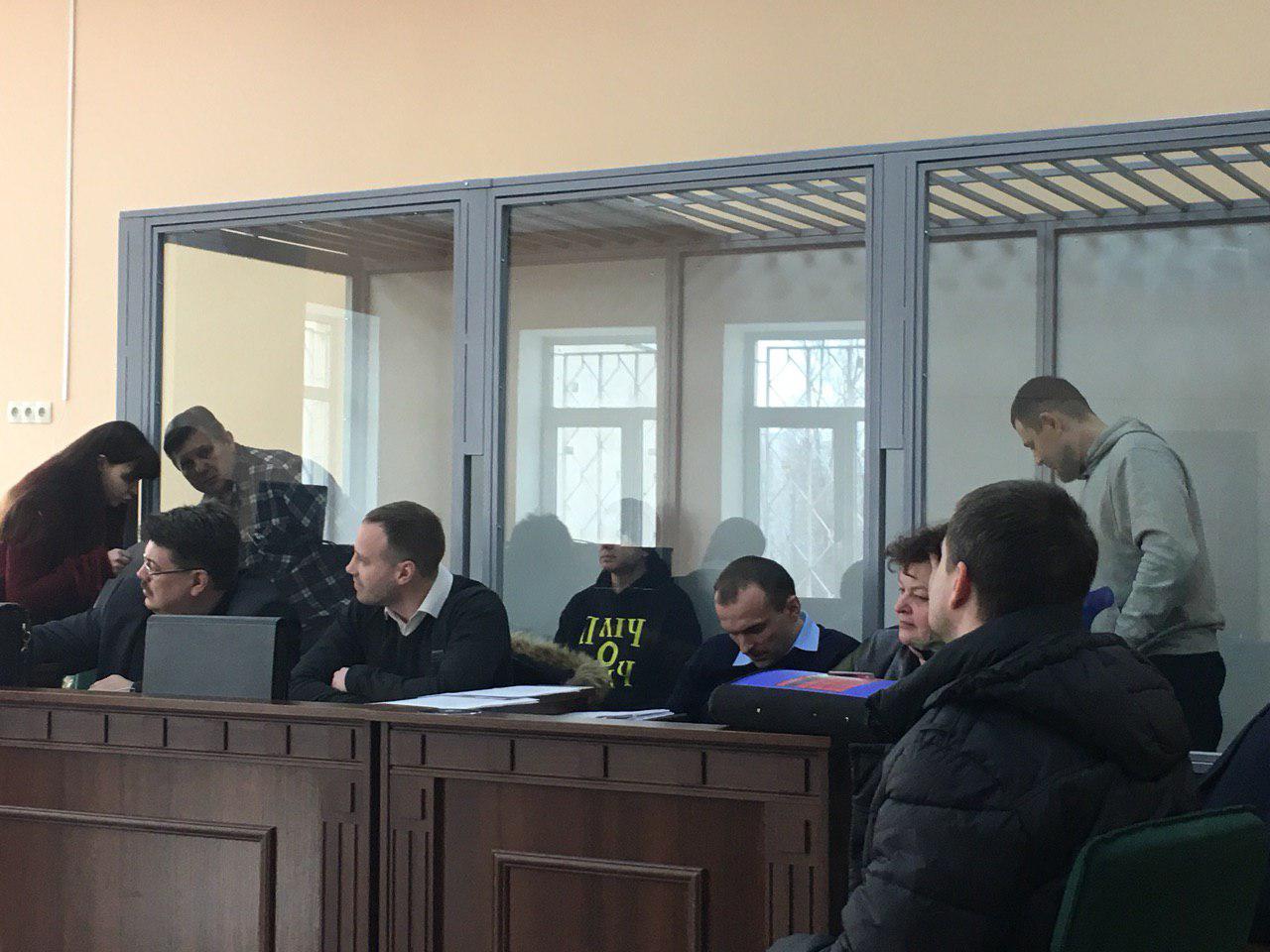 Адвокаты и подозреваемые (в боксе слева направо Владимир Филимонов, Тимофей Нагорный, Георгий Левчук). Фото: "Страна"