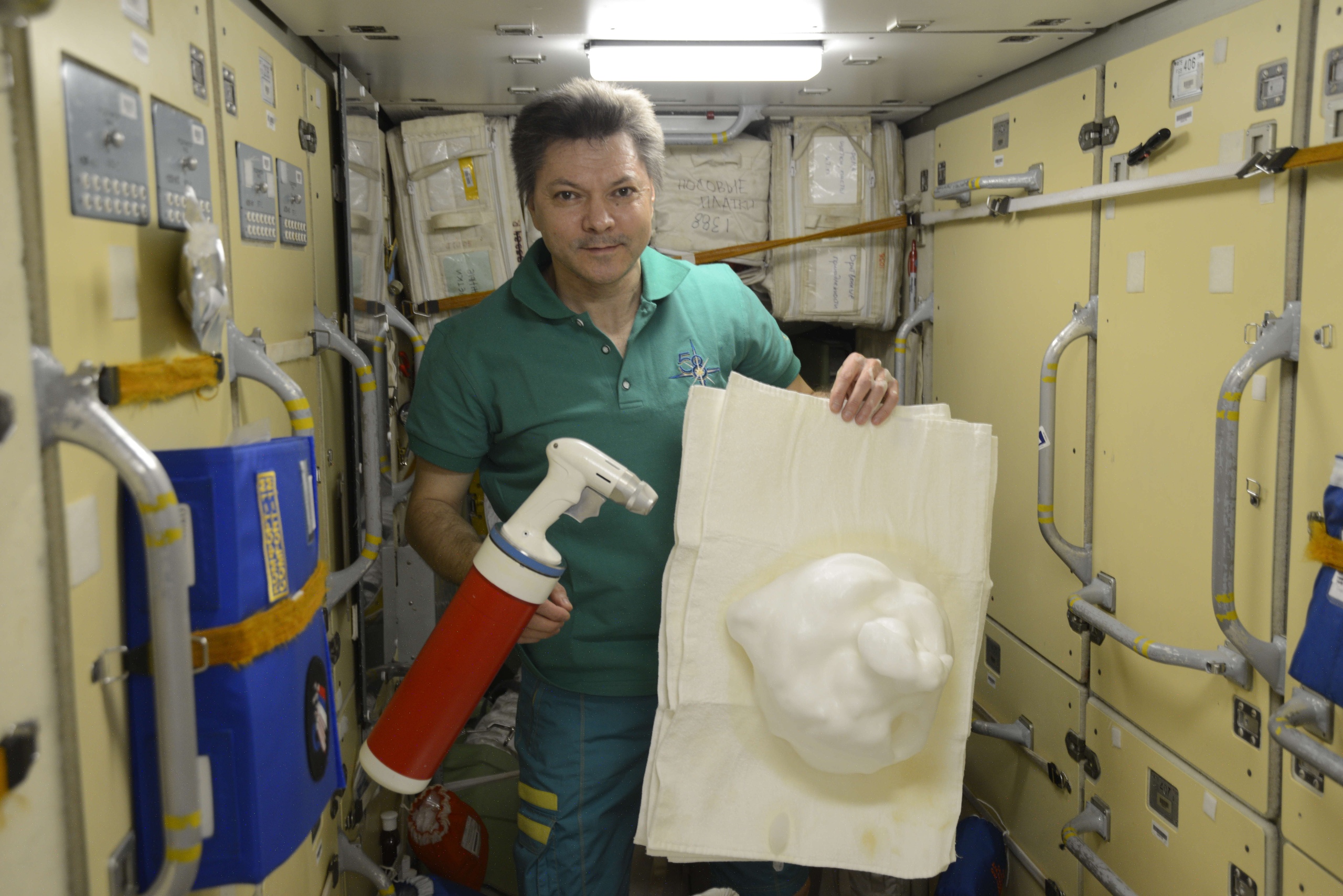 "Пена из огнетушителя не разлетается в невесомости по всей станции, а прилипает к поверхностям стен и приборов за счет клеевых присадок, чтобы ее было проще убрать после того, как пожар побежден", - говорится в публикации.