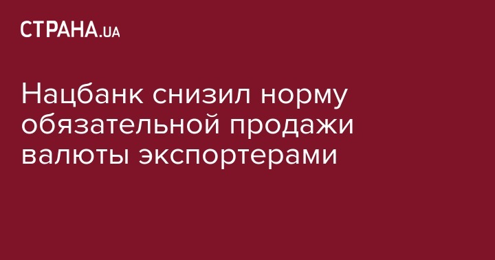 Нацбанк снизил норму обязательной продажи валюты экспортерами