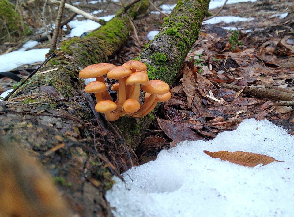 В сети появились снимки зимнего опёнка, который пробился сквозь снежный покров в зоне отчуждения Чернобыльской АЭС. Снимки выложил Чернобыльский радиационно-экологический Биосферный заповедник в Facebook.