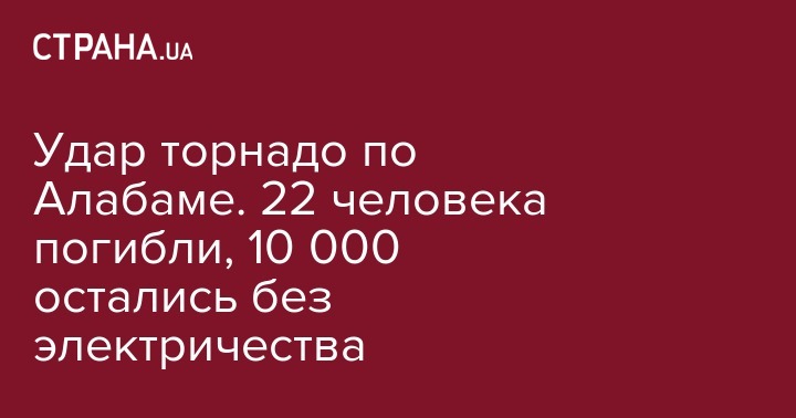 Удар торнадо по Алабаме. 22 человека погибли, 10 000 остались без электричества