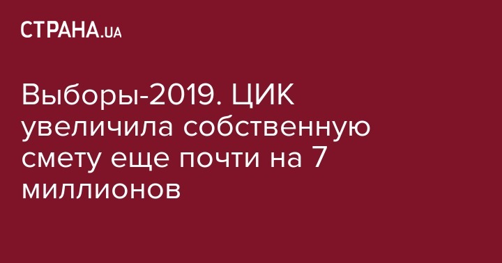 "Комиссия внесла изменения в смету расходов Центральной избирательной комиссии на подготовку и проведение очередных выборов Президента Украины 31 марта 2019 года, утвержденного постановлением ЦИК от 3 января 2019 №6 (с изменениями, внесенными постановлением ЦИК от 11 февраля 2019 № 284), изложив его в новой редакции. После внесенных изменений сумма расходов Комиссии увеличилась на 6 740 671 гривну и составляет 282 053 202 гривны", - отчитались в ЦИК.