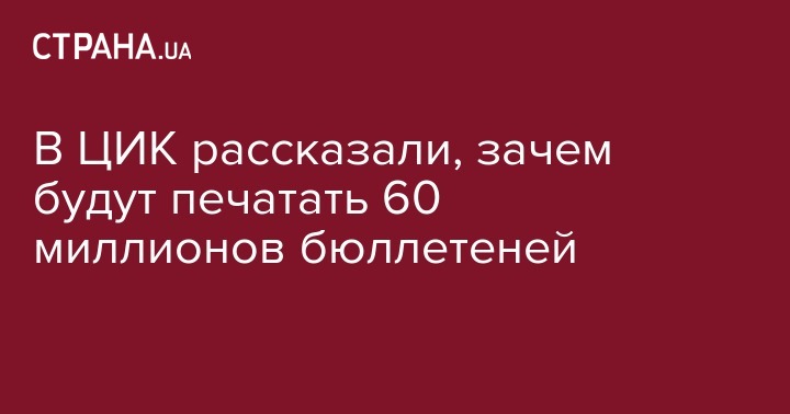 В ЦИК рассказали, зачем будут печатать 60 миллионов бюллетеней