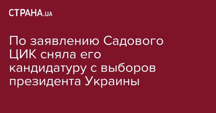 Андрей Садовый 4 марта подал заявление об отзыве своей кандидатуры с выборов президента Украины после того, как 1 марта заявил, что снимает свою кандидатуру на выборах в пользу лидера партии "Гражданская позиция" Анатолия Гриценко.