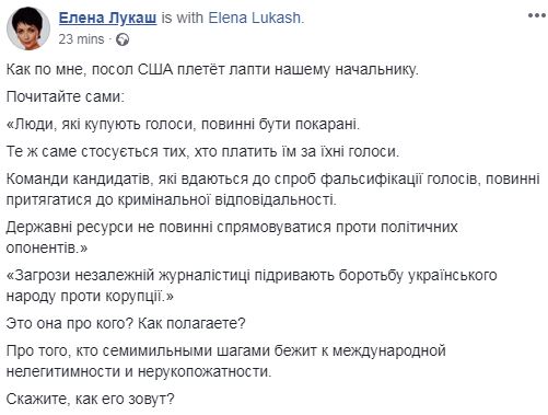 Однако экс-министр юстиции Елена Лукаш усомнилась в высказываниях посла США.