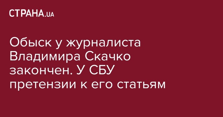 Только что завершился обыск у журналиста Владимира Скачко. Он не задержан. Журналиста приглашают на допрос в Херсон на понедельник.