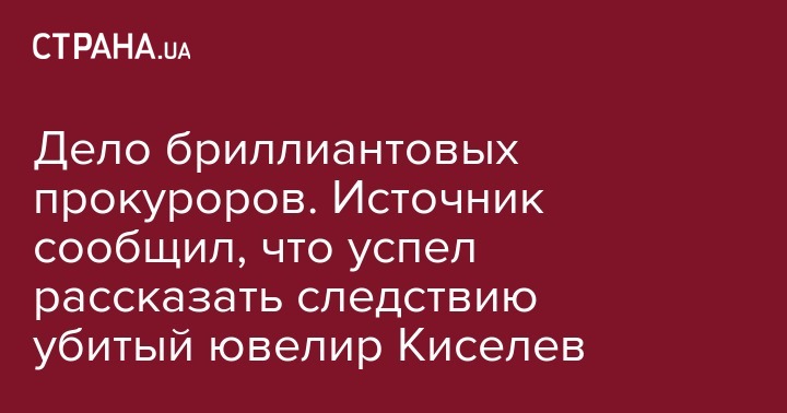 После громкого убийства в Киеве Сергея Киселева, директора "ЮВК-Агат", стала появляться противоречивая информация о его причастности к скандальному делу "бриллиантовых прокуроров".