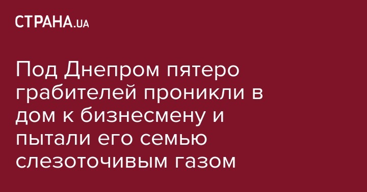 В селе Александровка Днепропетровской области грабители напали на мужа и жену в их доме. Преступники пытали семью слезоточивым газом. Об этом сообщает УНН со ссылкой на  правоохранительные органы.