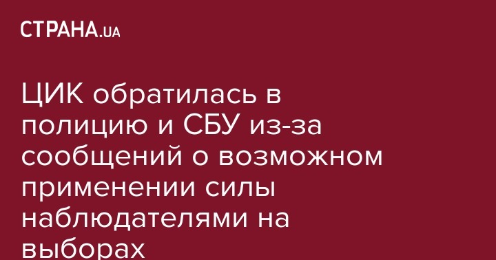 Центральная избирательная комиссия (ЦИК) во время заседания в среду, 6 марта, приняла постановление, в котором обратилась к Службе безопасности Украины и Нацполиции, призвав правоохранителей проверить информацию о возможных намерениях некоторых общественных организаций использовать статус официальных наблюдателей на выборах президента Украины в непредусмотренный законодательством способ, а также предпринять меры по недопущению таких действий. Об этом сообщает пресс-служба ЦИК.