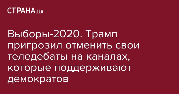 Президент США Дональд Трамп выступил с угрозой отказаться от теледебатов на выборах-2020 на тех телеканалах, которые поддерживают демократов. Это заявление стало ответом на отказ демократов провести внутренние теледебаты на канале Fox News, который поддерживает Трампа.