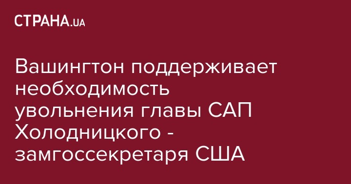 Заместитель государственного секретаря США по политическим вопросам Дэвид Хейл заявил, что Вашингтон поддерживает заявление посла США в Украине Марии Йованович о необходимости  увольнения главы Специализированной антикоррупционной прокуратуры Назара Холодницкого. Об этом сообщает "Интерфакс-Украина".