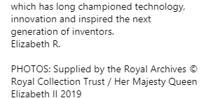 "Сегодня я имела удовольствие узнать об обучении детей компьютерному кодированию. Мне кажется уместным опубликовать этот пост в Instagram, находясь в Музее науки, который долгое время хранит технологии, инновации и вдохновляет следующие поколения изобретателей", – написала в сети Елизавета II.