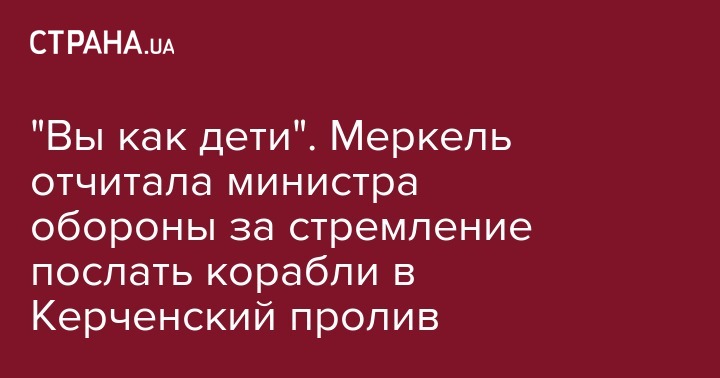 Меркель дала довольно жесткий ответ: "...Вы рассуждаете как дети!" - заявила она, - вы исходите из того, что Путин ничего не предпримет и будет смотреть как мы дефилируем в проливе. А если он сделает с нашими кораблями то же самое, что уже сделал однажды с украинскими? Вы что, воевать Германии предлагаете, госпожа министр? Почему мы должны пренебрегать интересами Германии ради интересов США?...".