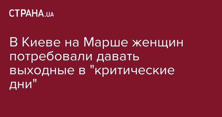 В Киеве на Марше женщин, одна из его участниц развернула плакат, который призывает давать выходные в "критические дни". Об этом сообщает корреспондент "Страны".
