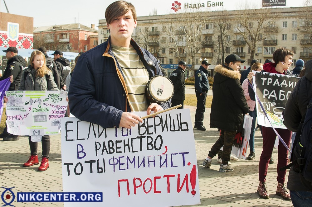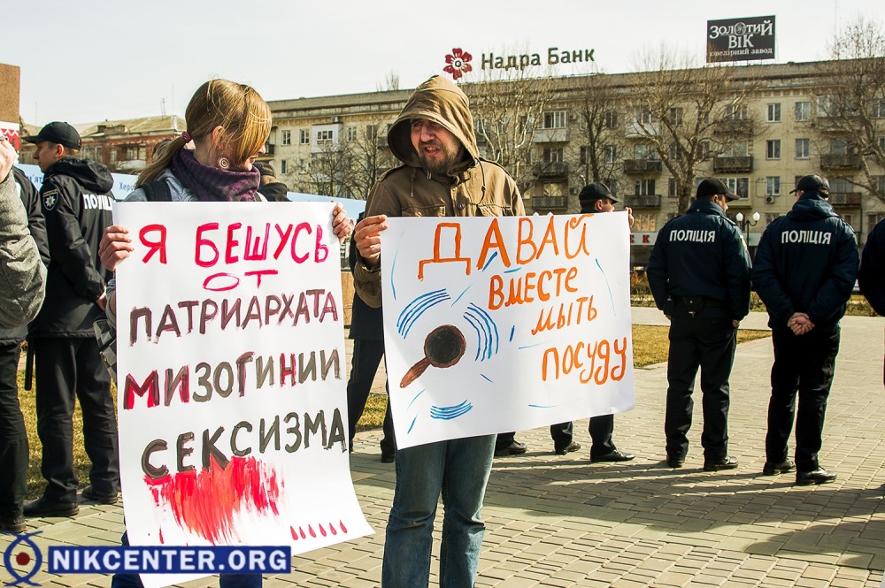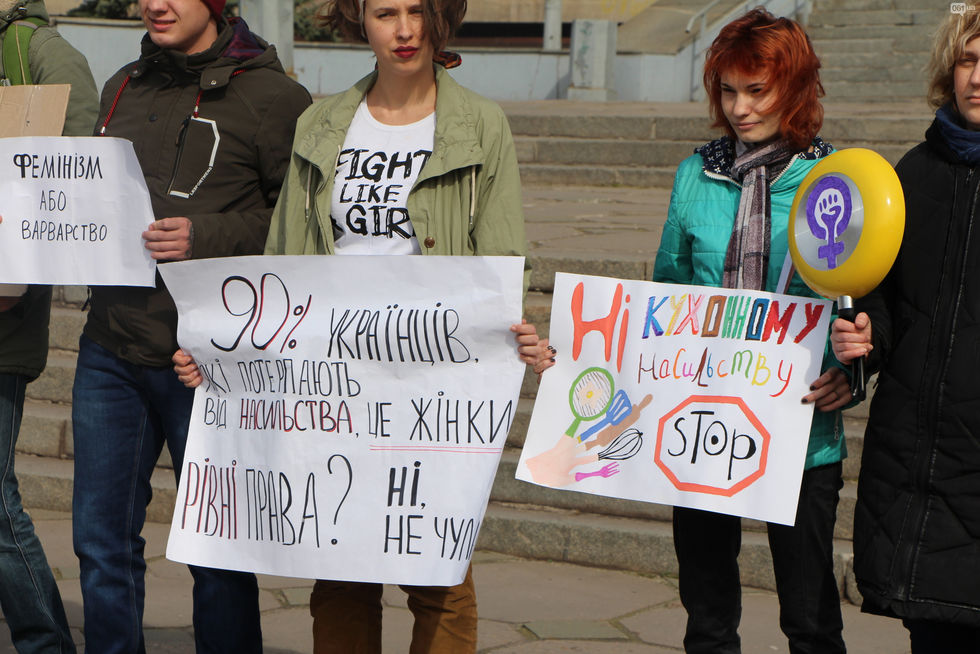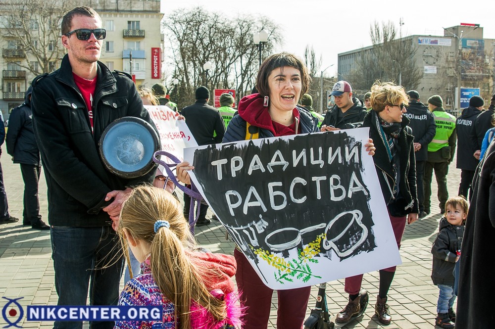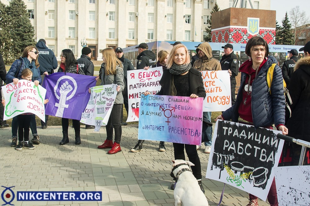 По данным UA: Харків, женщины прошли по центру города с лозунгами "Место женщины везде", "Бунтуй, кохай, права не віддавай", "Не продавайся за цветы - завтра станешь у плиты".