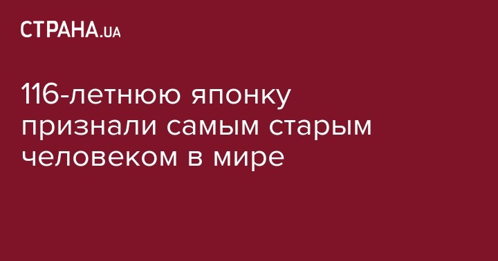 В Книге рекордов Гиннеса зафиксировали новый рекорд. Самым старым человеком в мире признали Канэ Танака - 116-летнюю жительницу Японии. Об этом сообщает сайт организации.