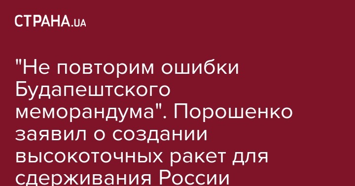 "Нас больше не связывают никакие ограничения ни по дальности полета наших ракет, ни по их мощности - пускай враг об этом тоже знает. Нам нужно высокоточное ракетное оружие и повторять ошибки Будапештского меморандума мы больше не собираемся", - сообщил глава государства.