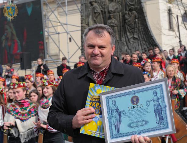 "В 2016 году в Херсоне установили рекорд Украины, тогда собралось 132 бандуриста. Сегодняшний результат во Львове превзошел это достижение почти в три раза. Рекорд Украины установлен", - рассказал представитель Национального реестра рекордов Украины Павел Горишевский.