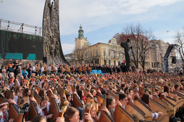В субботу, 9 марта, во Львове 407 бандуристов одновременно исполнили песни на стихи Тараса Шевченко. Об этом сообщает Львовская ОГА.