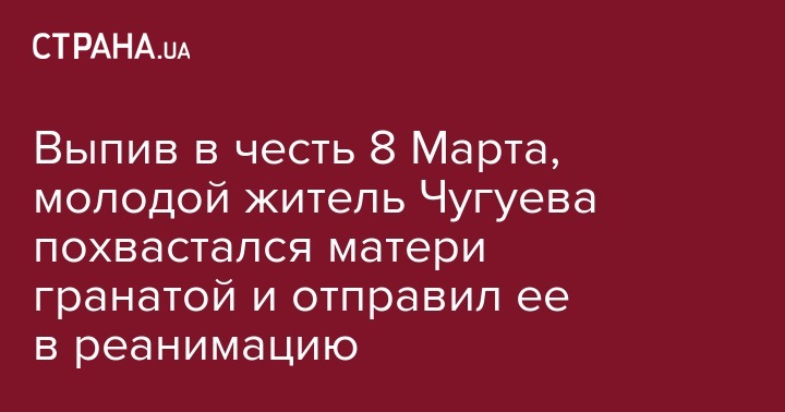 Вечером в пятницу, 8 марта, в Чугуеве Харьковской области в одном из частных домов на улице Осиновской взорвалась граната "Ф-1". Об этом сообщает Отдел коммуникации ГУ НП в Харьковской области