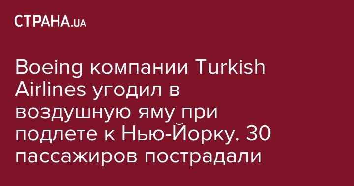 Boeing компании Turkish Airlines угодил в воздушную яму при подлете к Нью-Йорку. 30 пассажиров пострадали