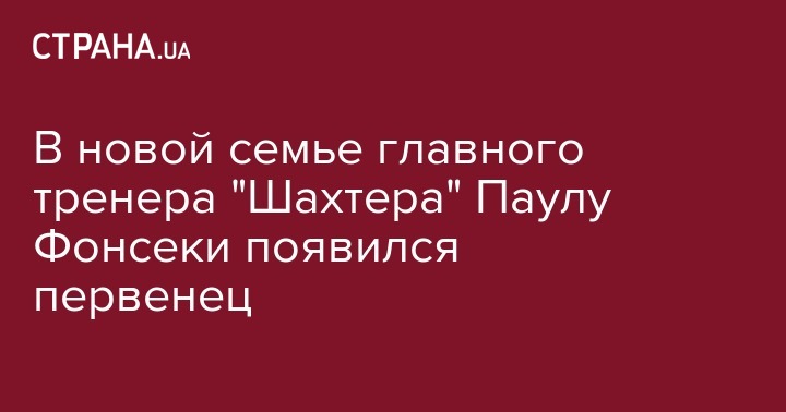 В субботу, 9 марта, в семье главного тренера "Шахтера" Паулу Фонсеки случилось пополнение. Жена Катерина родила ему сына. Мальчика назвали Мартин. Об этом сообщает пресс-служба чемпионов Украины.