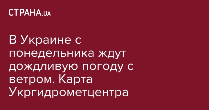 В Украине с понедельника ждут дождливую погоду с ветром. Карта Укргидрометцентра