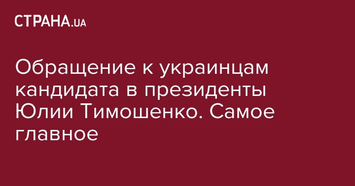 Обращение к украинцам кандидата в президенты Юлии Тимошенко. Самое главное