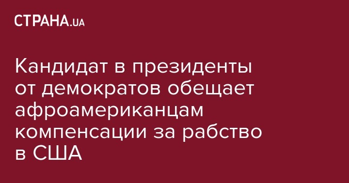Кандидат в президенты от демократов обещает афроамериканцам компенсации за рабство в США