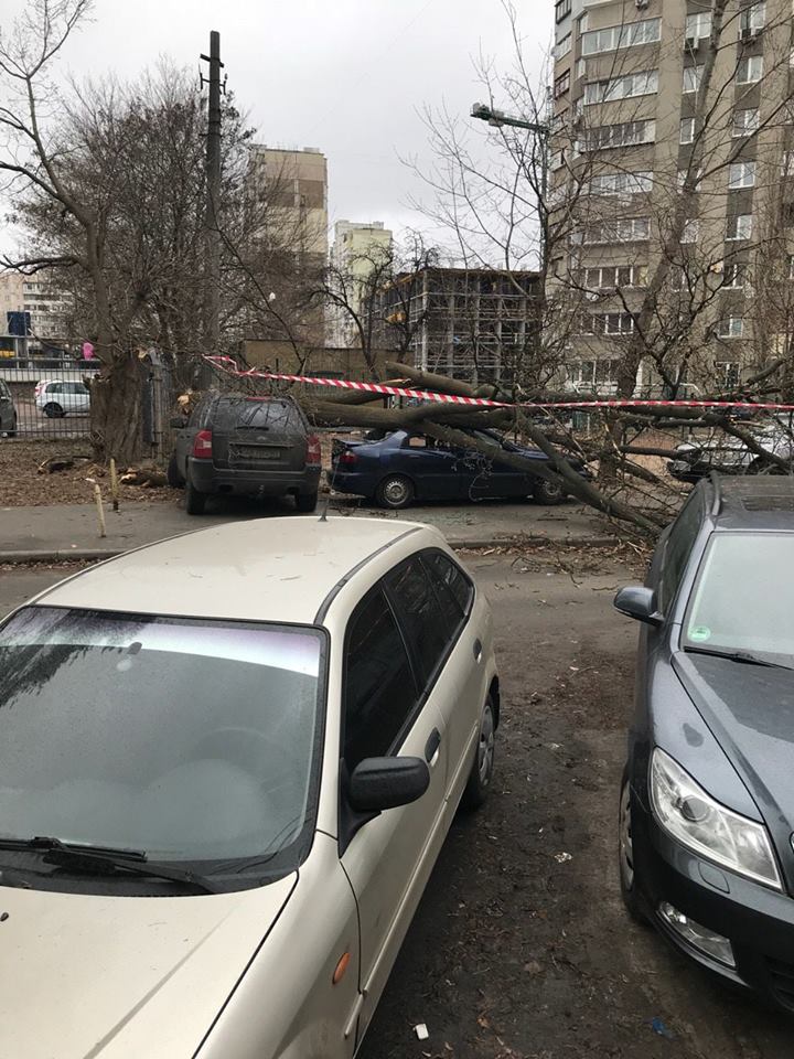 Дерево упало на припаркованную машину в районе метро Нивки.