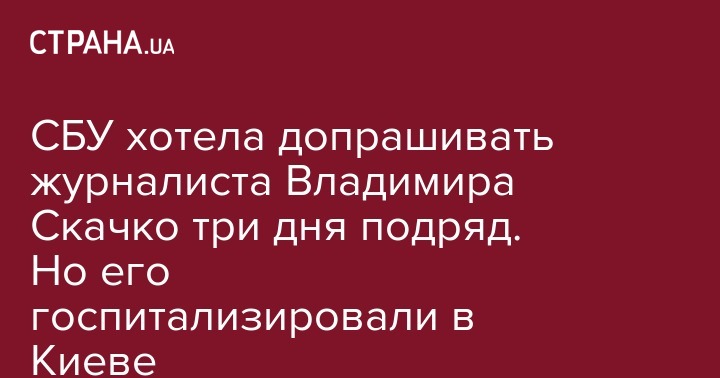 Журналист Владимир Скачко, у которого 5 марта был проведен обыск в его киевской квартире и объявлено о подозрении в сепаратизме, госпитализирован в связи с ухудшением состояния его здоровья.