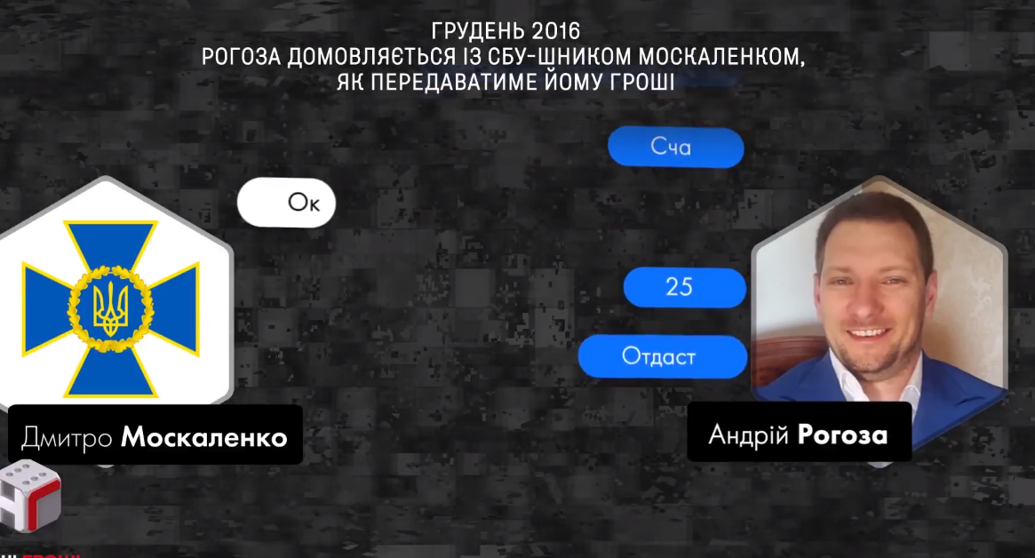 В одной из бесед они обсуждают сумму взятки. Москаленко не удовлетворен тем, что привез ему водитель Рогозы.