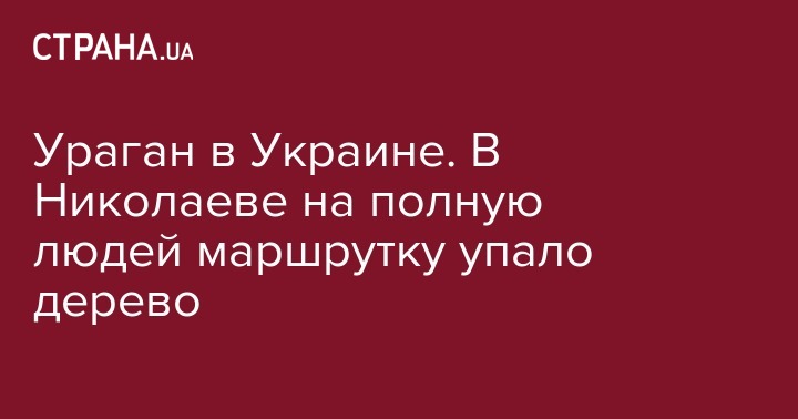 В Николаеве в Заводском районе на маршрутное такси упало дерево в результате порыва ураганного ветра. Во время инцидента в транспортном средстве находились около 15 человек. Об этом сообщили в пресс-службе ГСЧС Николаевской области.