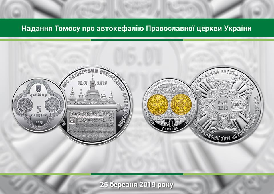 В НБУ выпустили тираж простых, серебряных и золотых монет, посвященных Томосу. Фото
