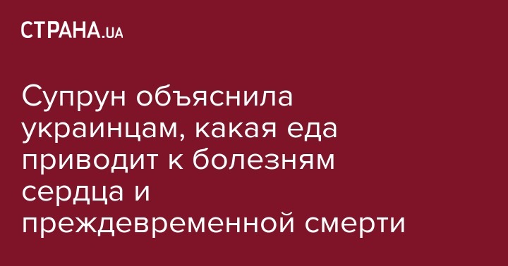 Глава Минздрава Украины Ульяна Супрун рассказала украинцам о том, как плохое питание приводит к риску появления болезней сердца, сосудов и риску преждевременной смерти, а также как с этим бороться. Об этом она написала на своей странице в социальной сети Facebook в понедельник, 11 марта.