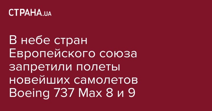 "После трагической аварии рейса ET302 авиакомпании Ethiopian Airlines с самолетом Boeing 737 MAX 8 Европейское агентство авиационной безопасности принимает все необходимые меры для обеспечения безопасности пассажиров", - говорится в сообщении. В качестве меры предосторожности EASA опубликовала сегодня директиву, которая предусматривает приостановление полетов всех самолетов Boeing 737-8 MAX и 737-9 MAX в Европе. Решение вступает в силу в 21:00 по Киеву.