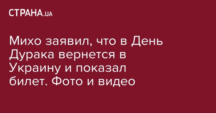 Михо заявил, что в День Дурака вернется в Украину и показал билет. Фото и видео