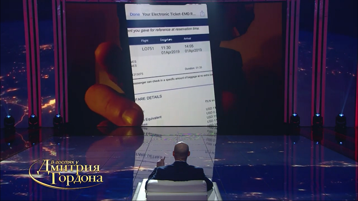 Он отметил, что купил билеты на самолет из Польши в аэропорт Борисполь на 14.05 первого апреля. В доказательство этого он продемонстрировал данные о покупке билета на своем телефоне.