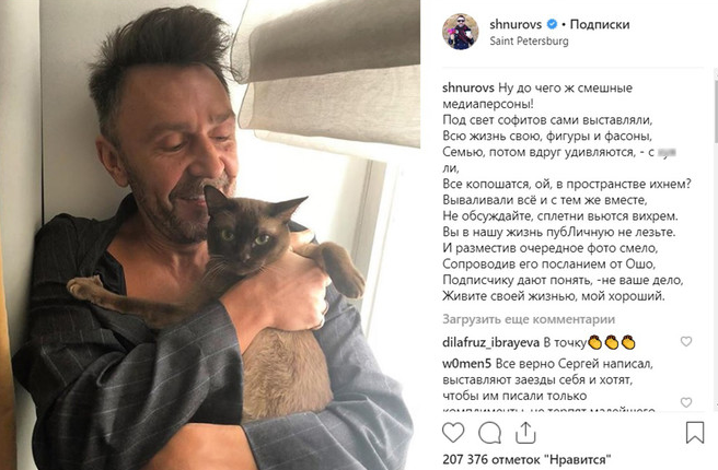 Кстати, это уже не первый наезд Шнурва и Собчак в Instagram друг на друга. Так в декабре Ксюша разметила пост с философской цитатой Ошо.