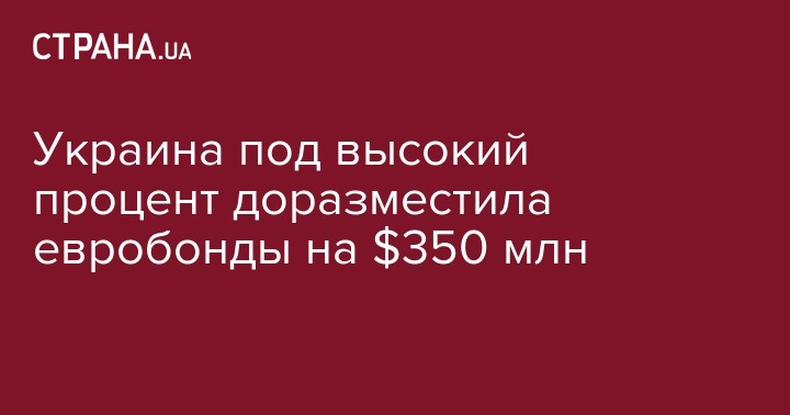 Украина доразместила 10-летние еврооблигации на 350 млн долларов со сроком погашения 1 ноября 2028 года. Об этом 13 марта сообщает пресс-служба Министерства финансов Украины.