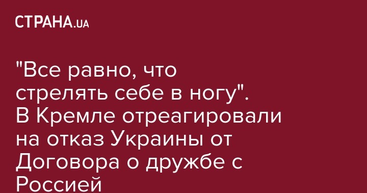 "Все равно, что стрелять себе в ногу". В Кремле отреагировали на отказ Украины от Договора о дружбе с Россией