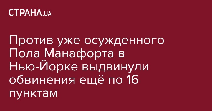 Против уже осужденного Пола Манафорта в Нью-Йорке выдвинули обвинения ещё по 16 пунктам